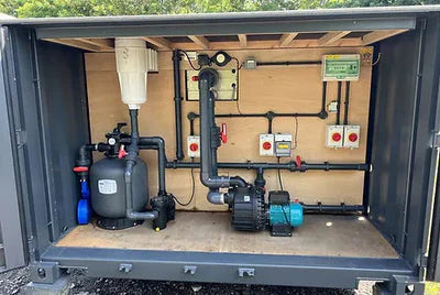 Uma vez instalada a piscina, esta deve ser enchida com água e ligada ao quadro de fusíveis do reservatório por um eletricista. Dependendo das opções, será necessária uma fonte de alimentação com uma capacidade de 13 kW.
